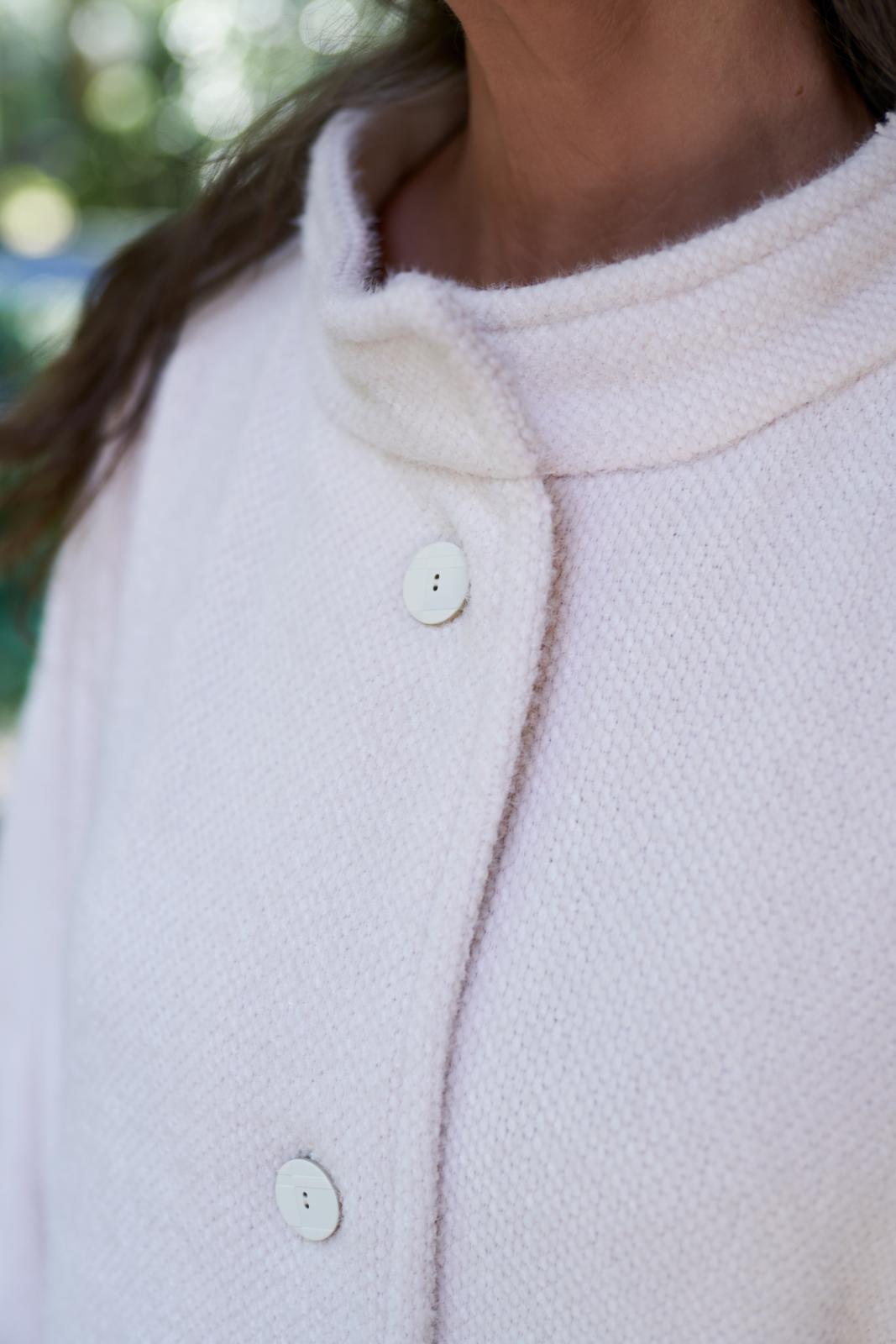 Stof: wol(mix) mantelstof, gekookte wol.