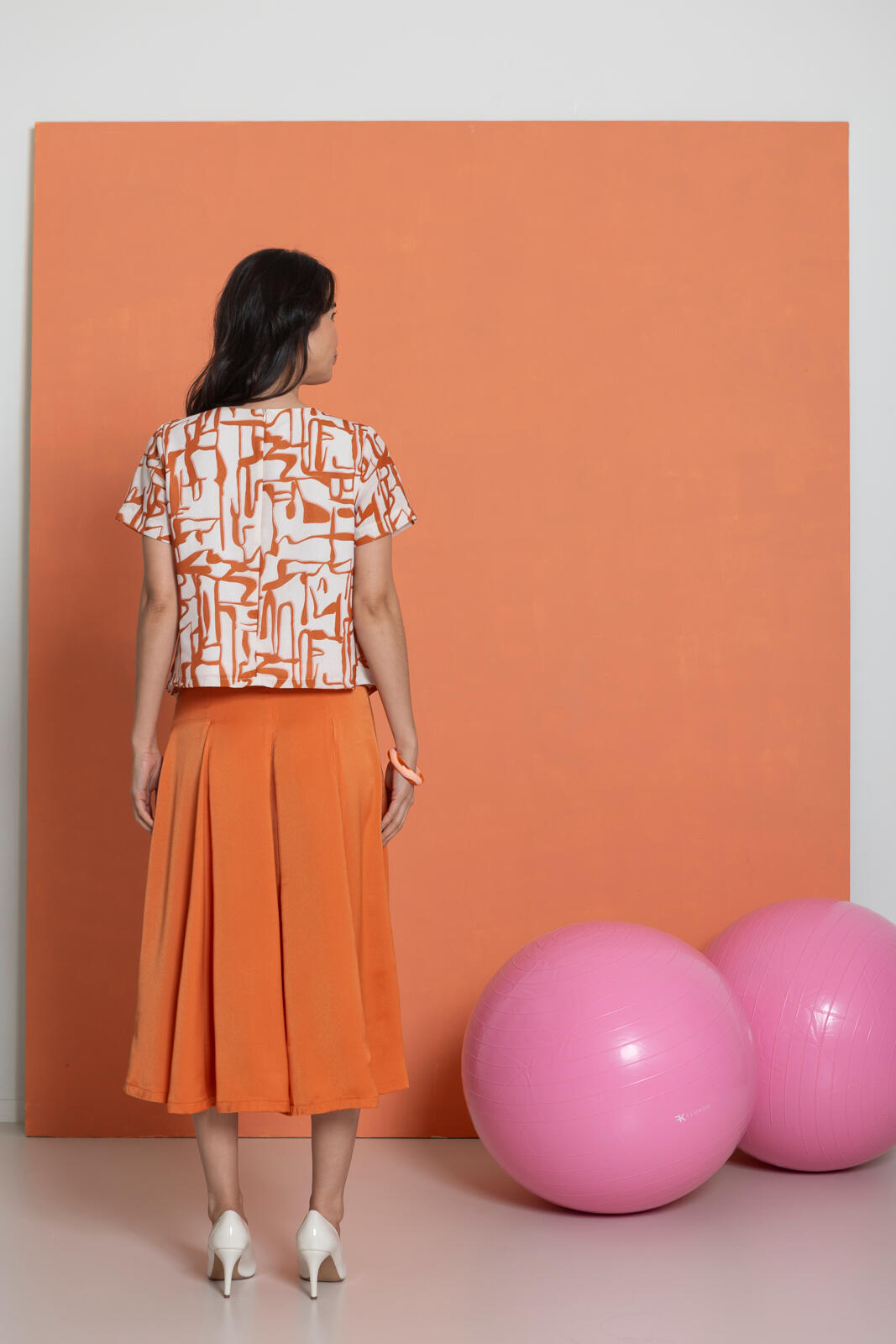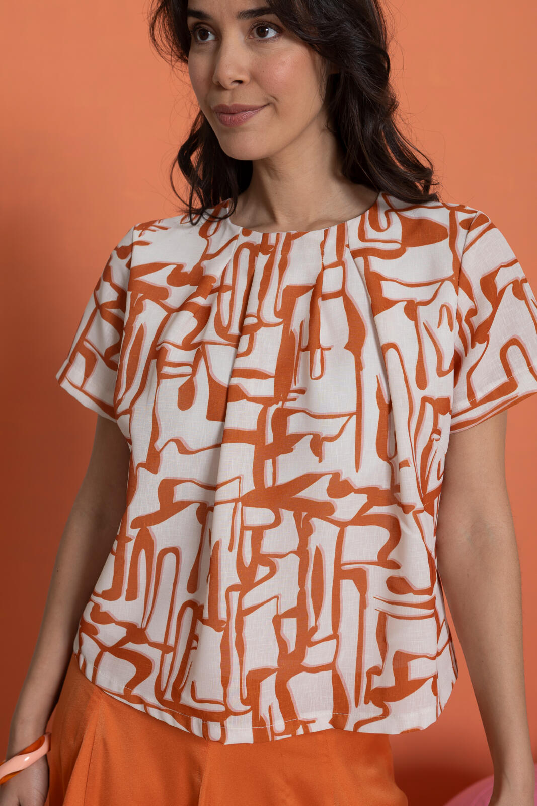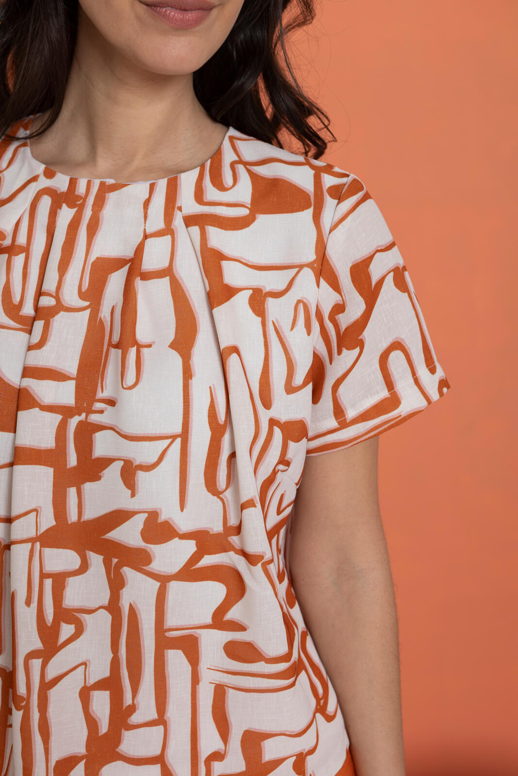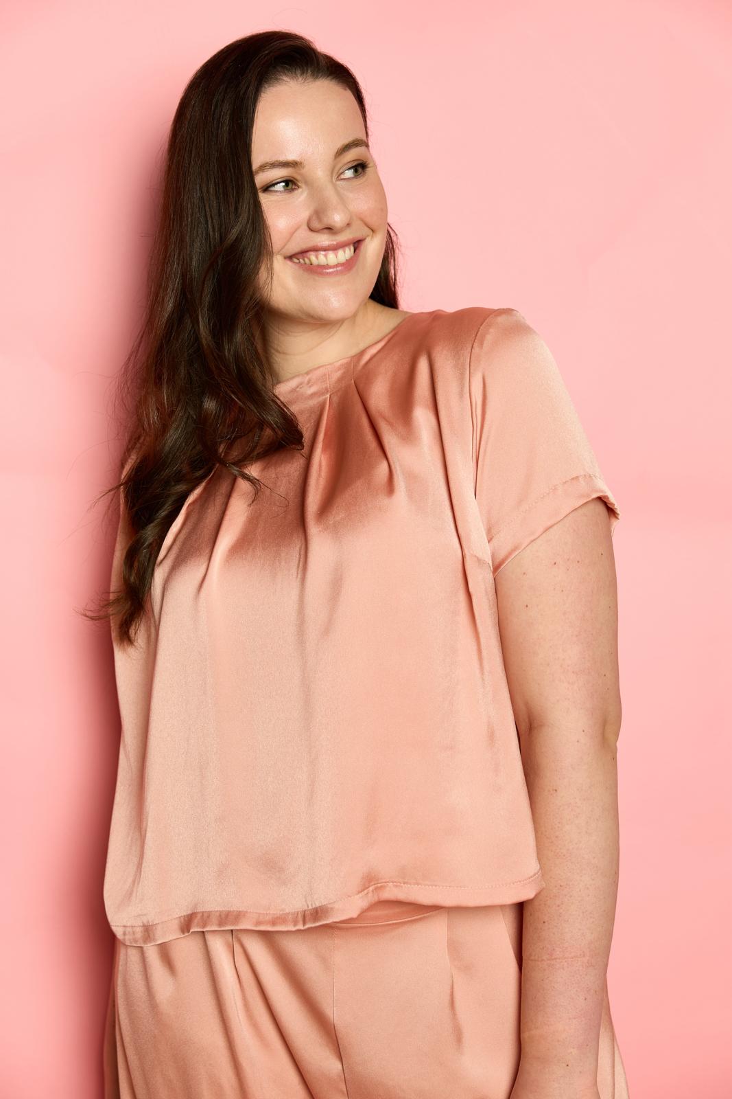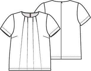 Met sierlijke plooitjes in de halslijn is deze top een echte klassieker. Hij heeft een blinde rits middenachter. Gebruik je rekbare stof? Dan kun je ook kiezen voor een split met lusje en knoopje in plaats van een rits.