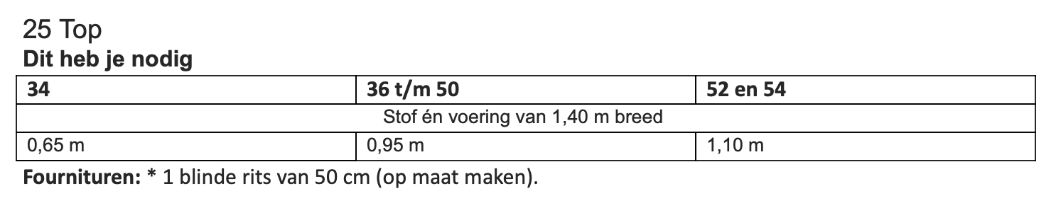 Dit patroon kun je maken in maat 34 t/m 54.