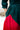 • De groene jurk met rode details is gemaakt van Organic Papertouch Poplin (100% katoen, 120 gsm) METERMETER.