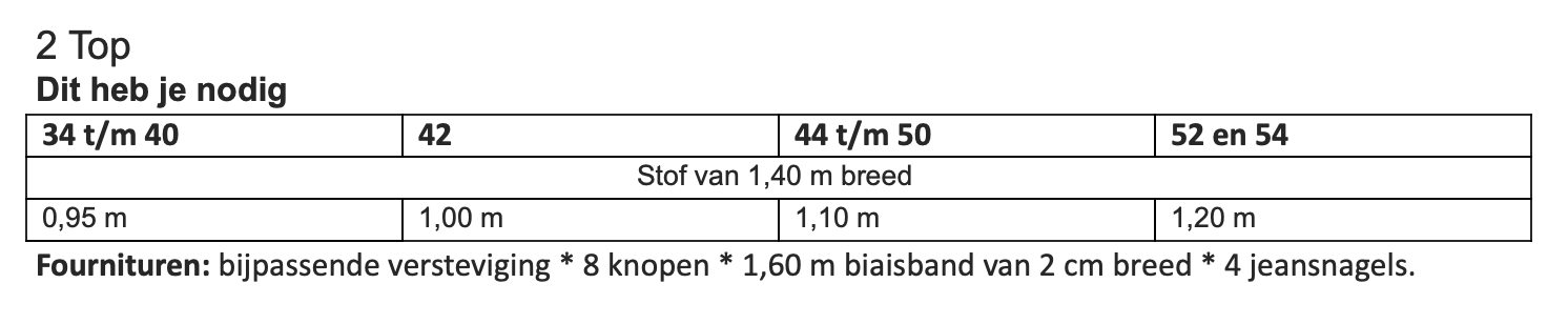 Dit patroon kun je maken in maat 34 t/m 54.