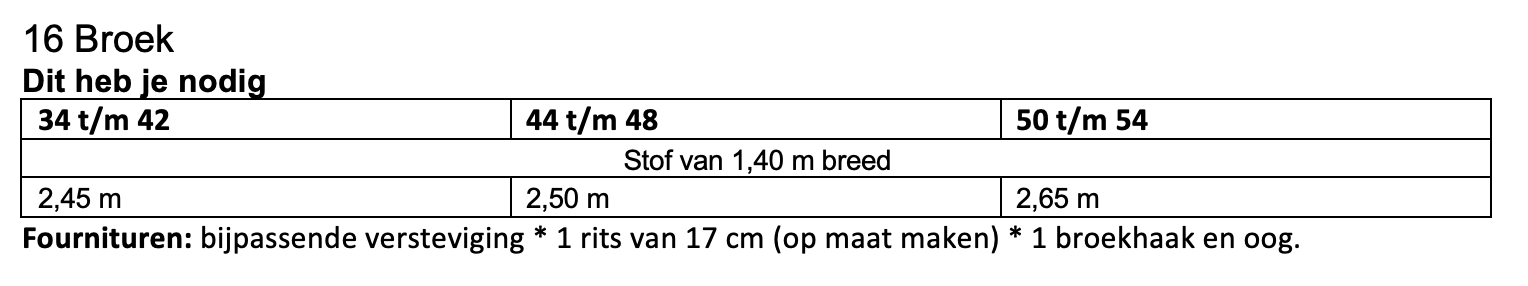 Dit patroon kun je maken in maat 34 t/m 54.