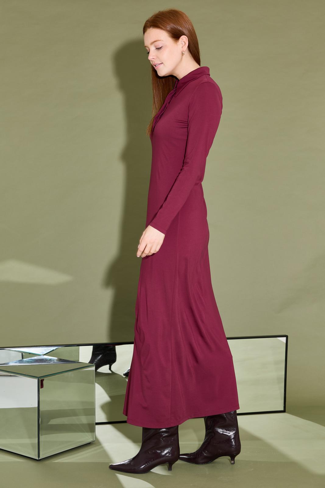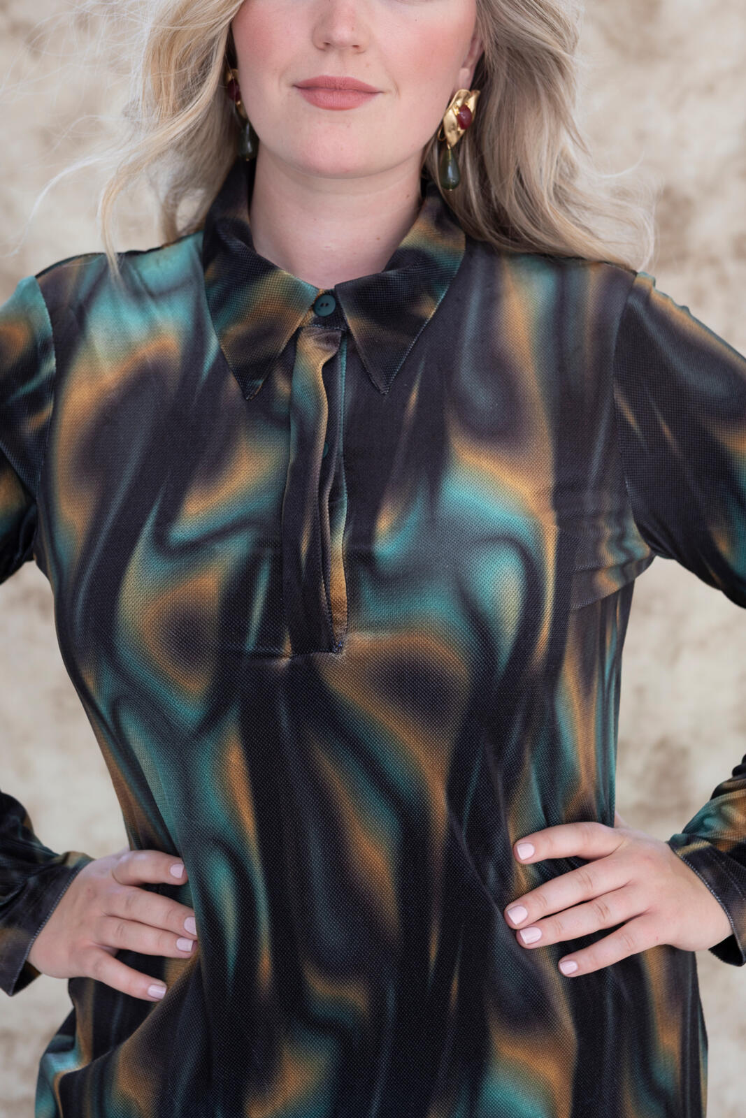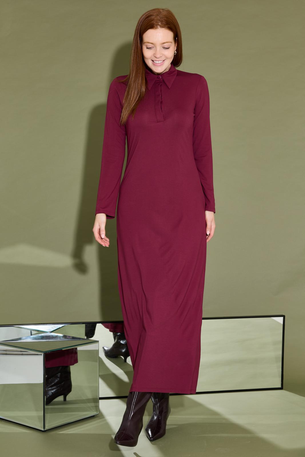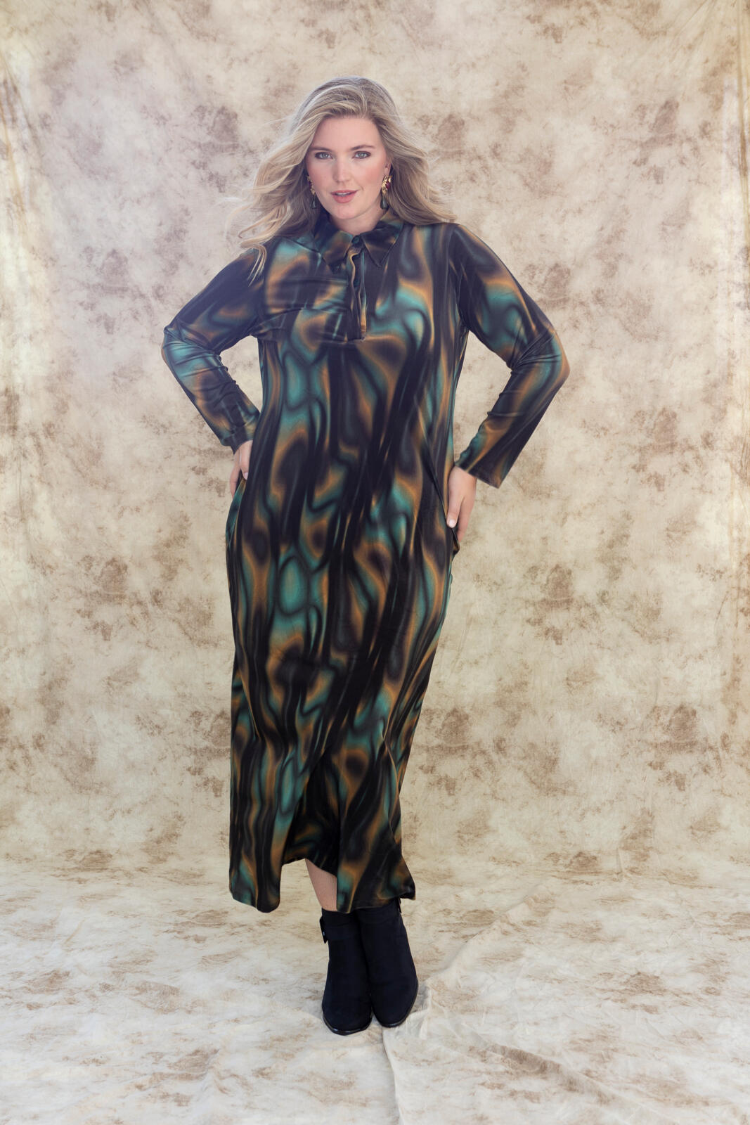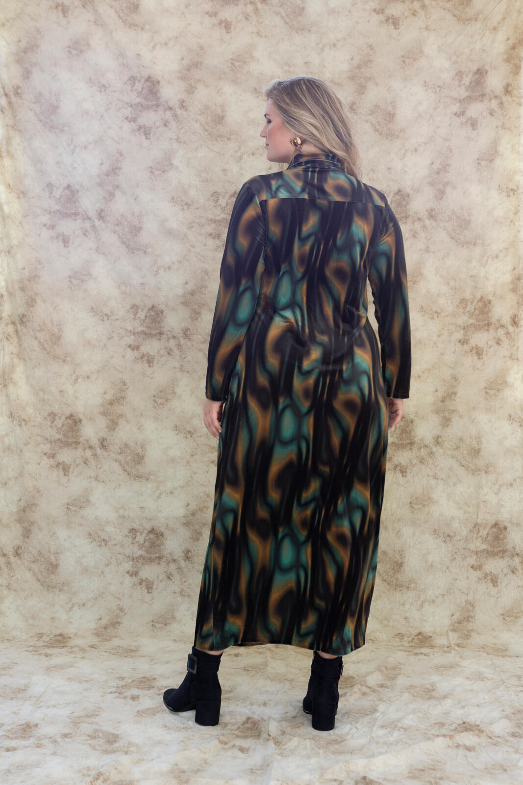De polo is hot, als top én als jurk. Zoals dit sobere maximodel dat je mooi combineert met een lang vest, oversized colbert of teddy bodywarmer. En ondanks het casual imago van de polo kun je er ook een feestelijke uitvoering van maken, zoals met veloursachtige jersey of dikke tricot met een glittertje. De slanke polojurk heeft een blinde polosluiting en rugpas.