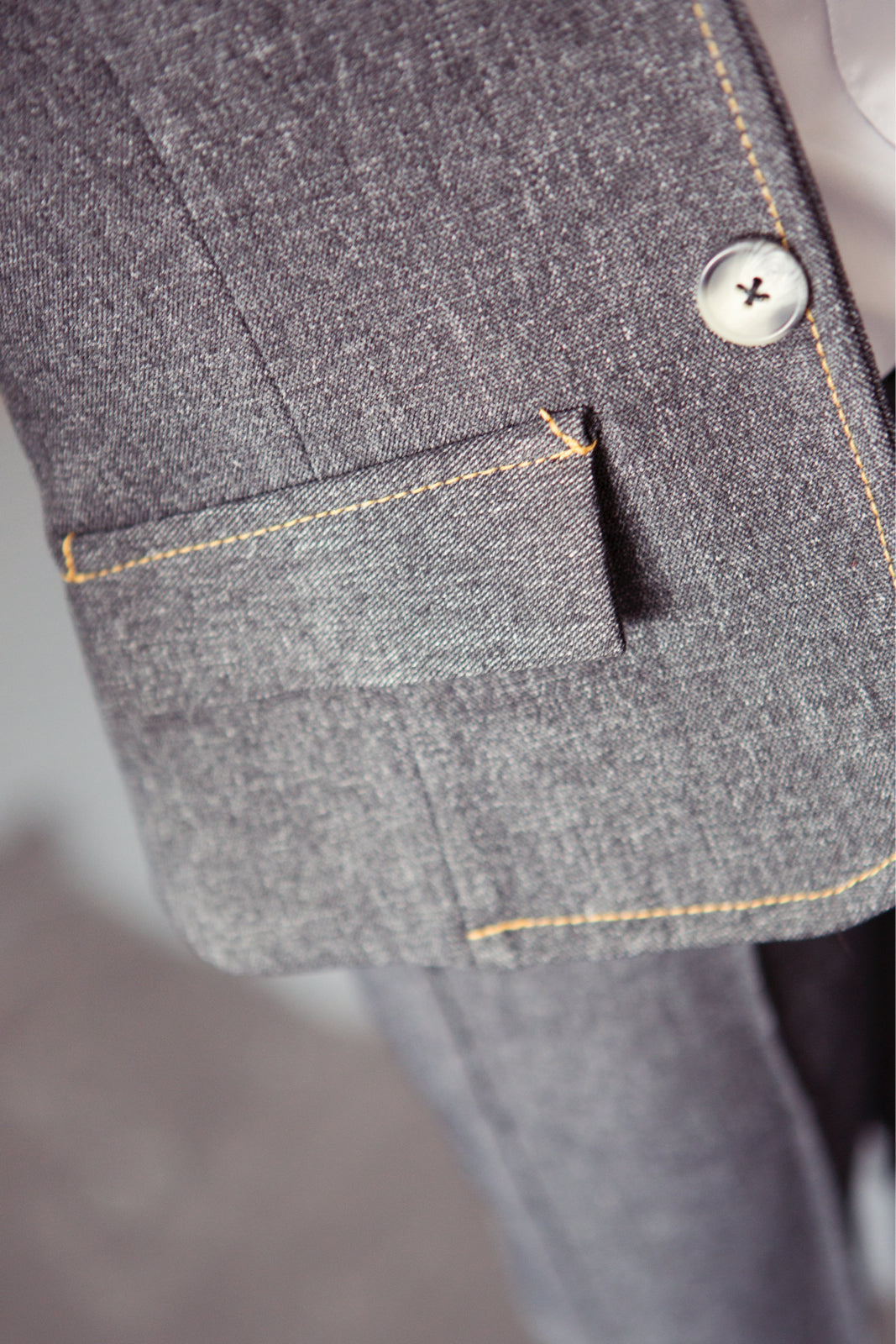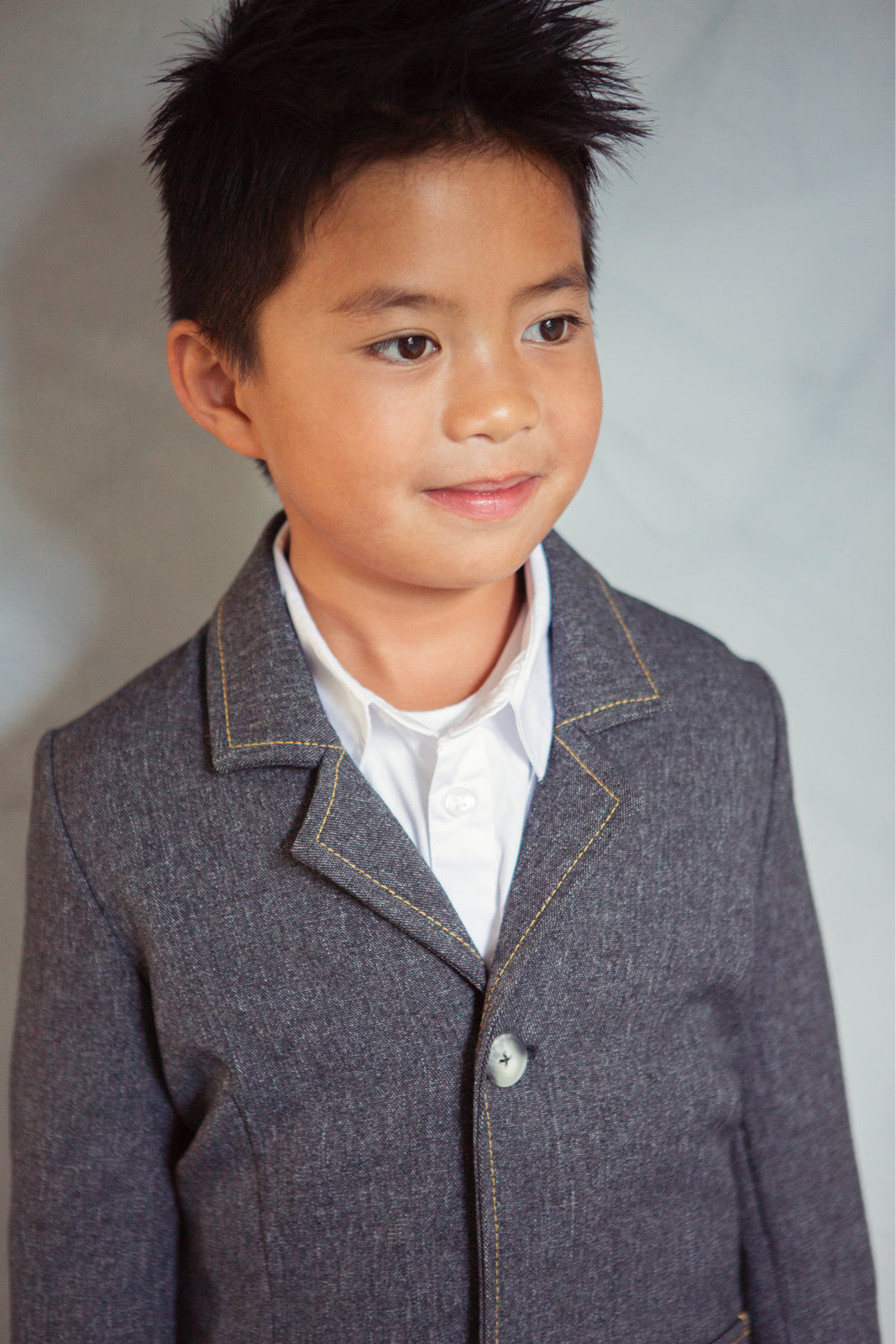 Maak je (klein)zoon blij met zo'n tof kostuum met slanke snit. Het colbertje, met alle klassieke details zoals de reverskraag en zakkleppen voor de sier. Maak het pak van denimlook stof (met wat stretch) voor een supercoole uitstraling.