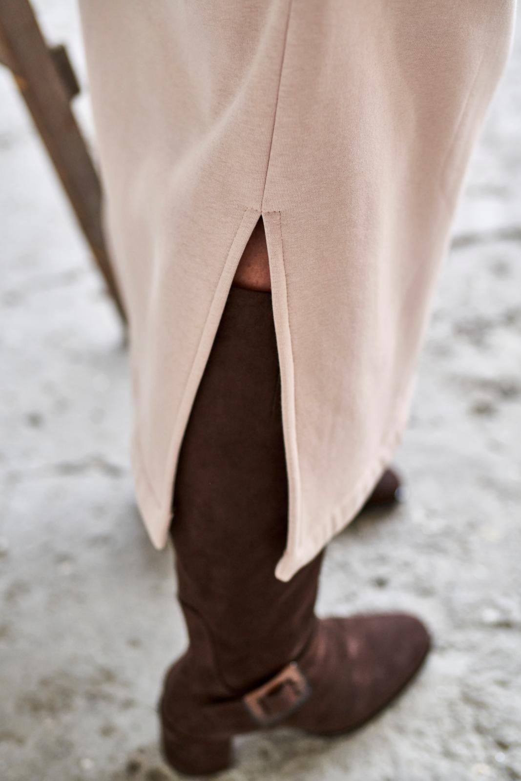 De sweatjurk is niet voor niks een evergreen; staat leuk, zit heerlijk. Dit model is een verlengde uitvoering van sweater 3, met elegante splitten in de zijnaden. Je maakt ze dus makkelijk beide.