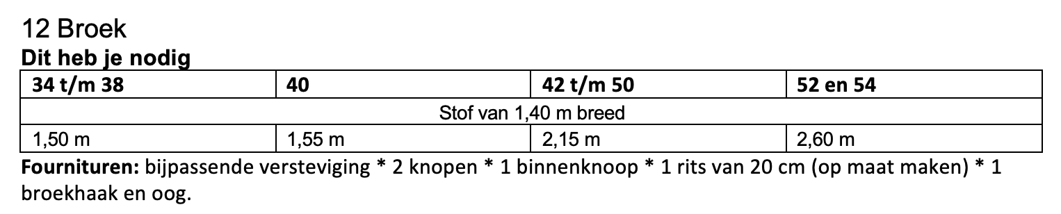 Dit patroon kun je maken in maat 34 t/m 54.