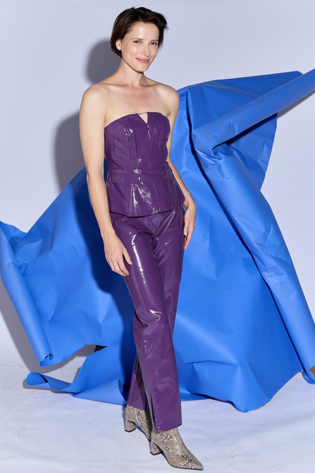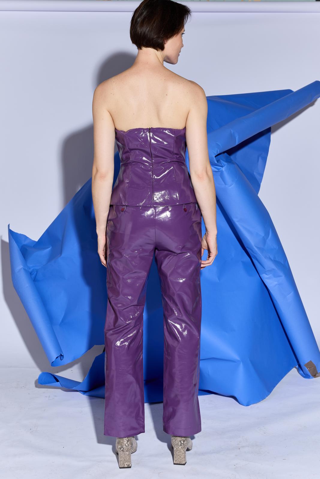 Deze broek is een gekleed model waarvan je met minder opvallende stoffen ook een meer doordeweekse versie kunt maken. Details: een tailleband met onzichtbare sluiting met broekhaak. En de zakken zijn onzichtbaar in de zijnaad verwerkt. Achter zitten twee paspelzakjes met knoopsluiting.