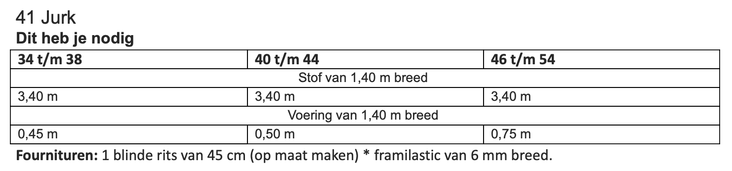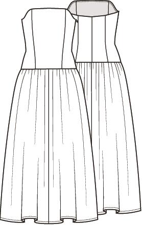 Stoffen: stevige stof voor het lijfje, de rok eventueel van een soepeler stof. Chambray, linnen, satijnkatoen.