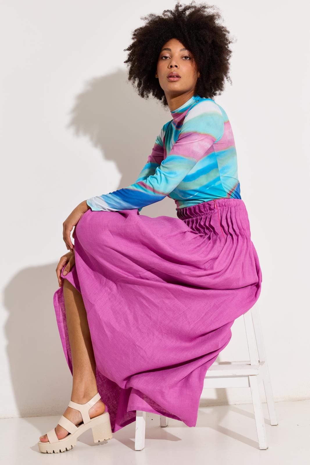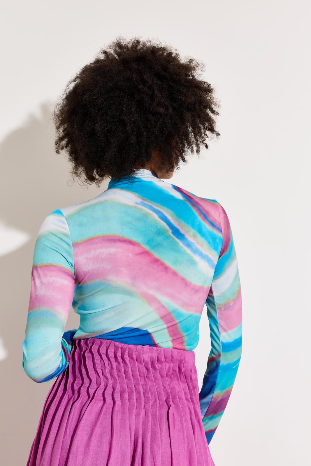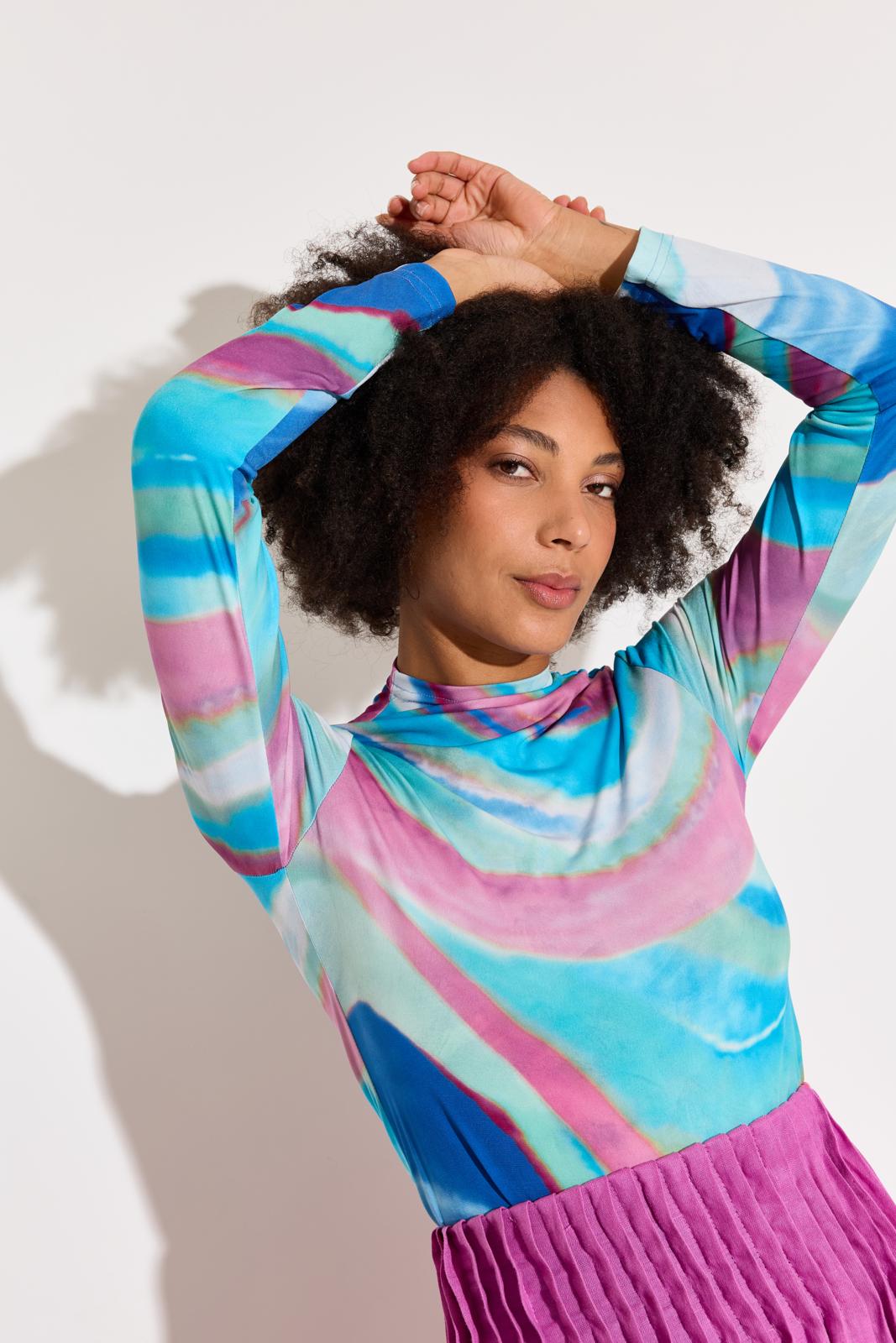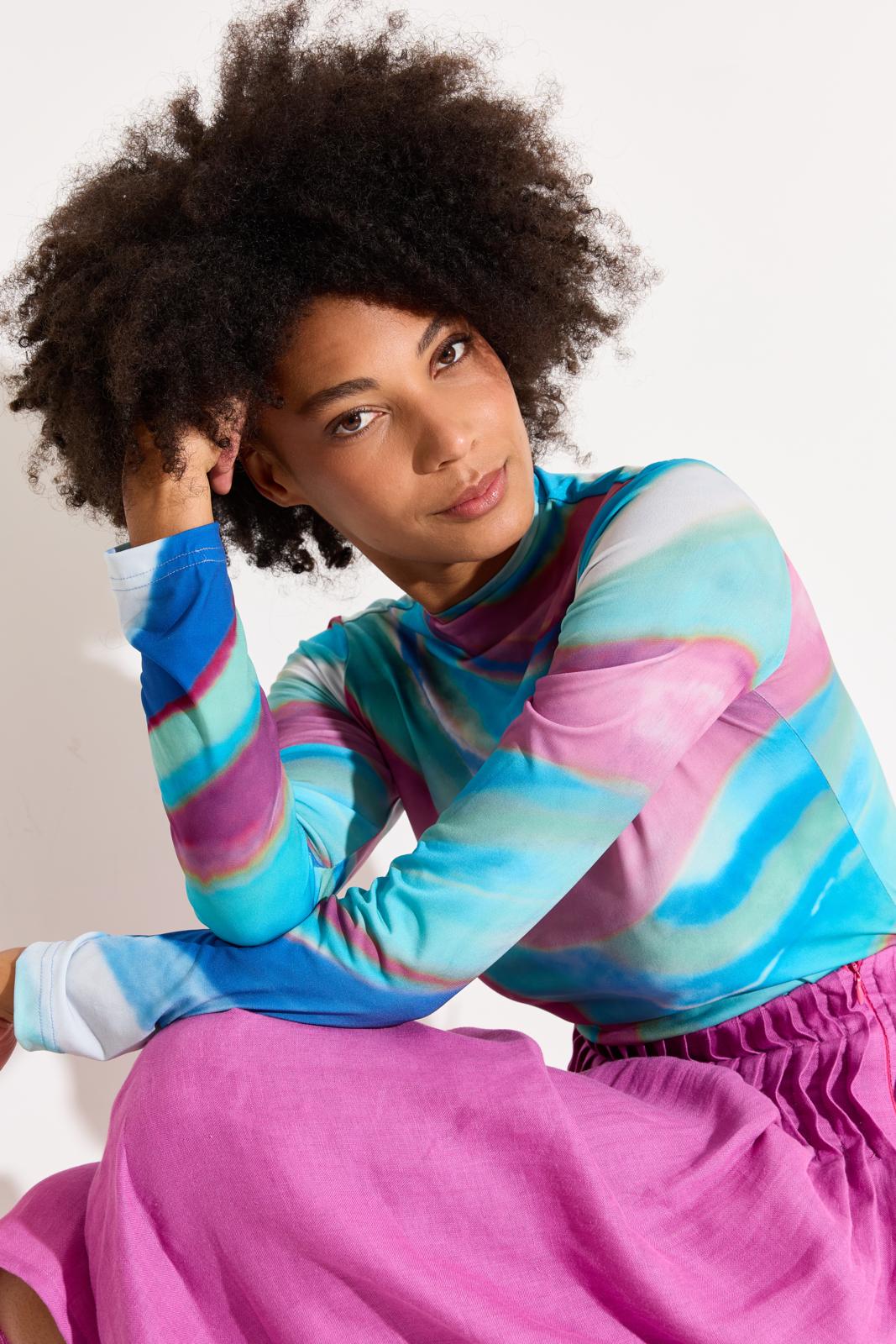 Hou je van een tikje hippie-chic? Koop een tricot of mesh met een bont dessin voor zo’n slanke turtleneck. Daarmee vrolijk je elke outfit op.