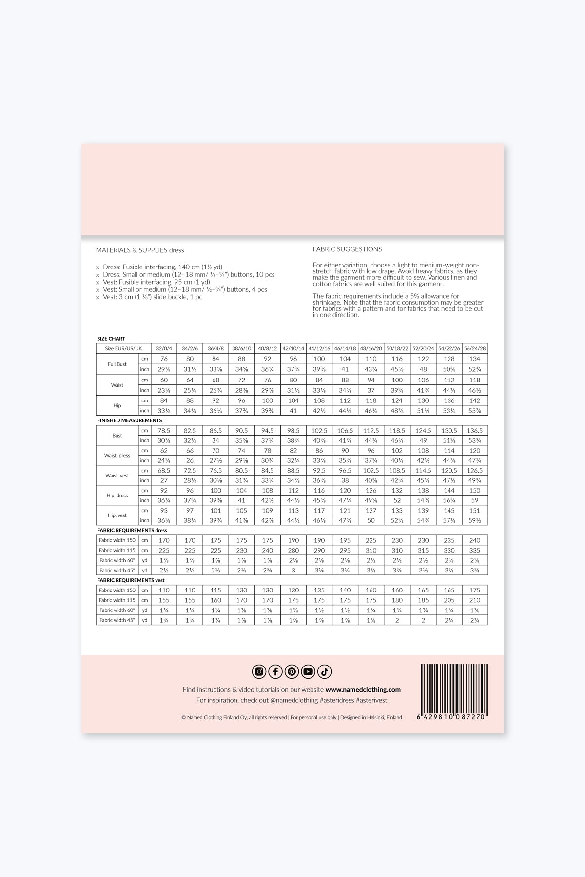 Het Asteri naaipatroon biedt twee stijlvolle opties: een elegante mouwloze midi jurk en een moderne gilet-top. Beide varianten zijn ongevoerd en hebben een flatterende prinsessennaden, een V-hals en een knoopsluiting aan de voorkant.