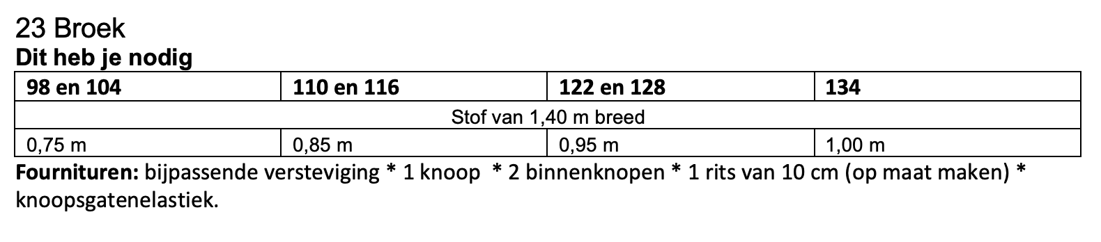 Dit patroon kun je maken in maat 98 t/m 134.