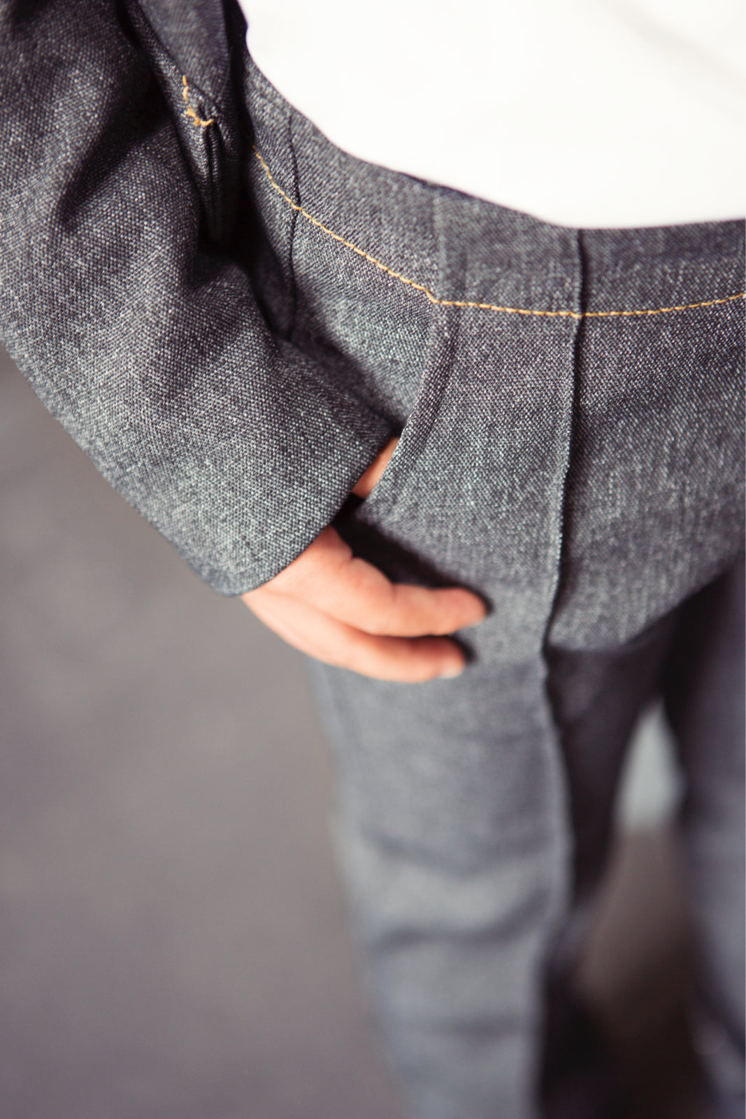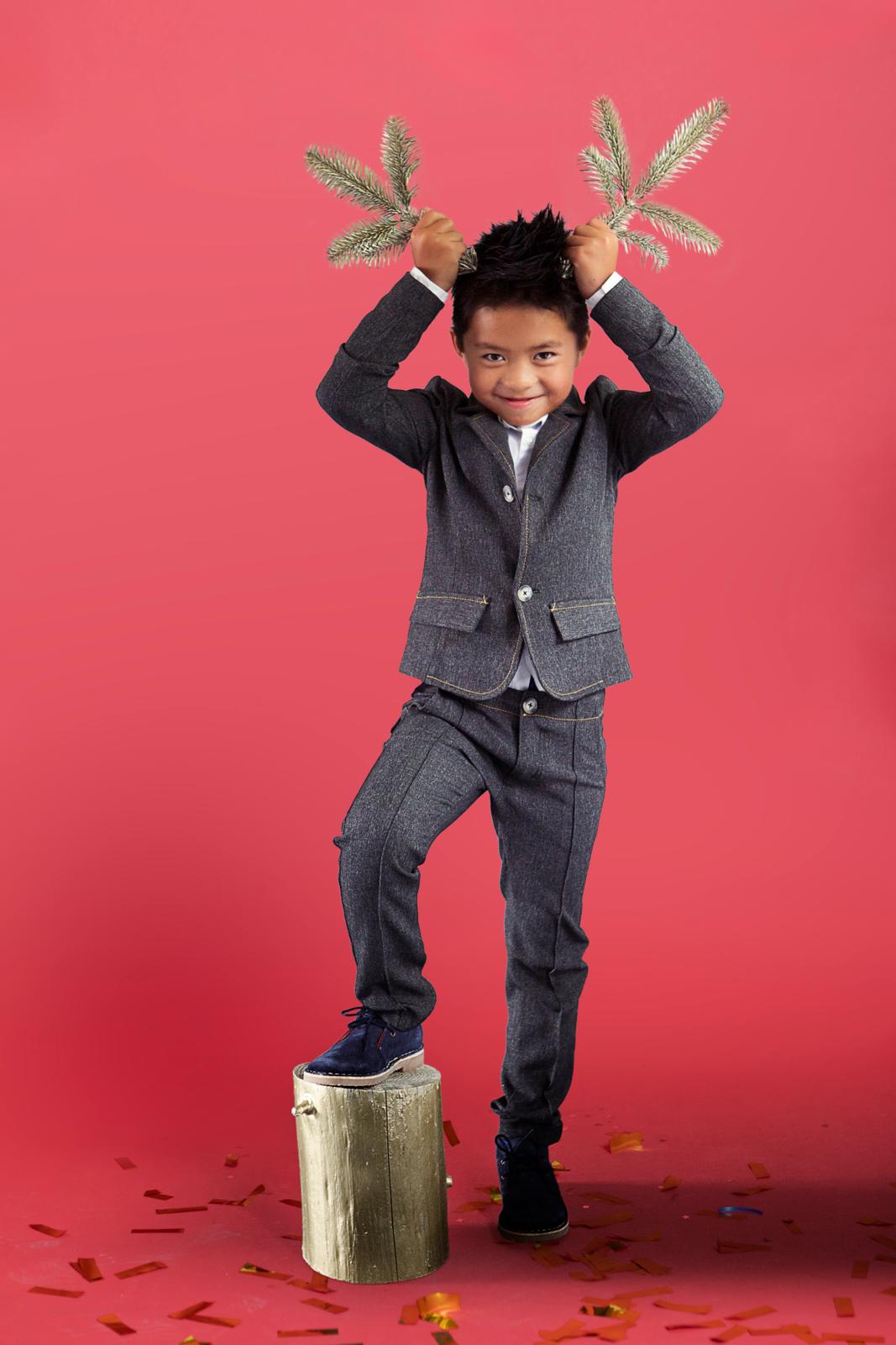 Maak je (klein)zoon blij met zo'n tof kostuum met slanke snit. De broek met slanke pasvorm en een heuppas achter. Maak het pak van denimlook stof (met wat stretch) voor een supercoole uitstraling.