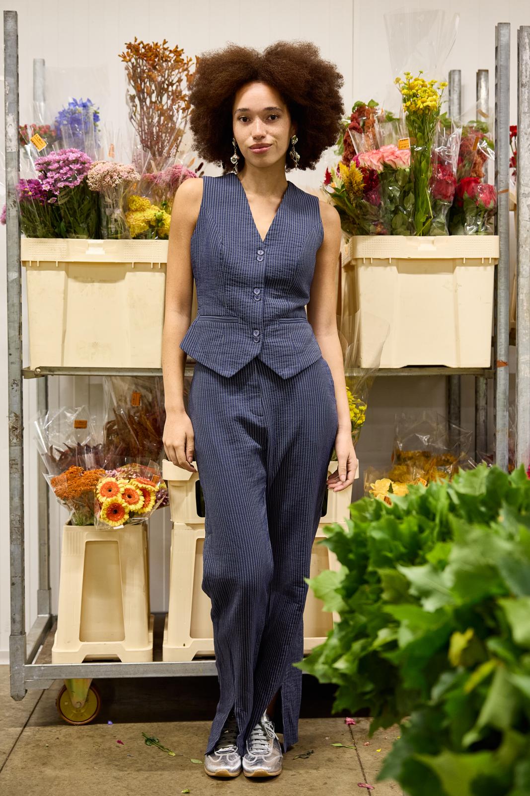 Combineer deze broek met een gilet of blazer voor een stijlvol tweedelig pak. Deze nette broek heeft een sluiting met een onzichtbare broekhaak en twee paspelzakjes achter (zoals de herenpantalon). De zakken zijn in de zijnaad verwerkt. De zijnaden zijn naar onderen toe, naar middenvoor verplaatst en eindigen in een split.