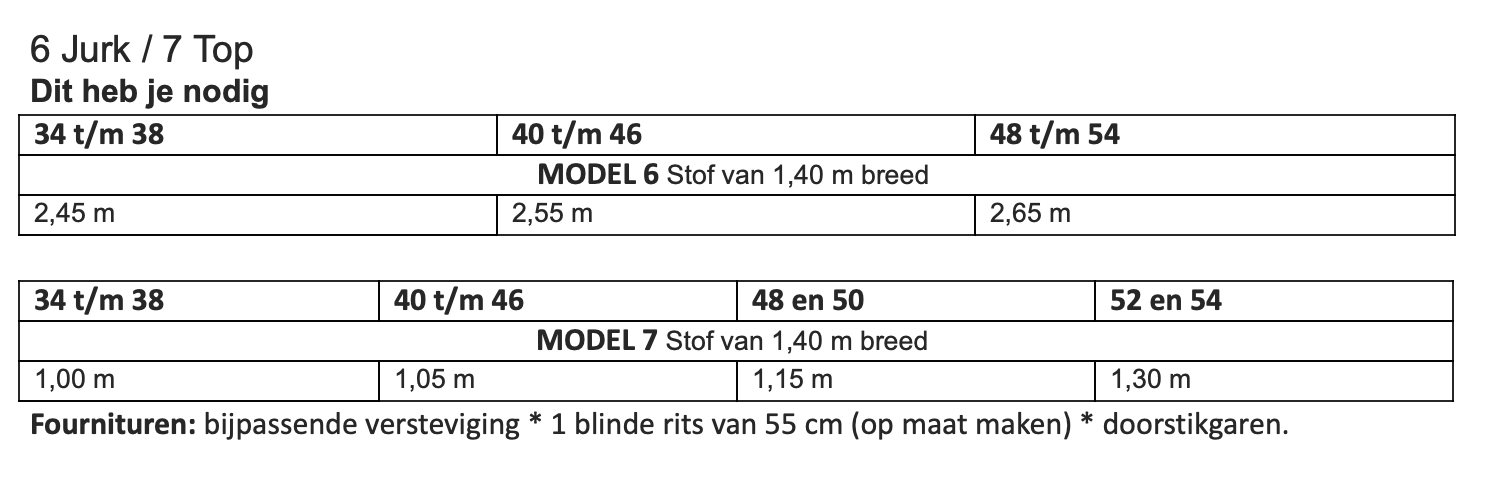 Stoffen: middelzware katoen, viscose crêpe, satijn.