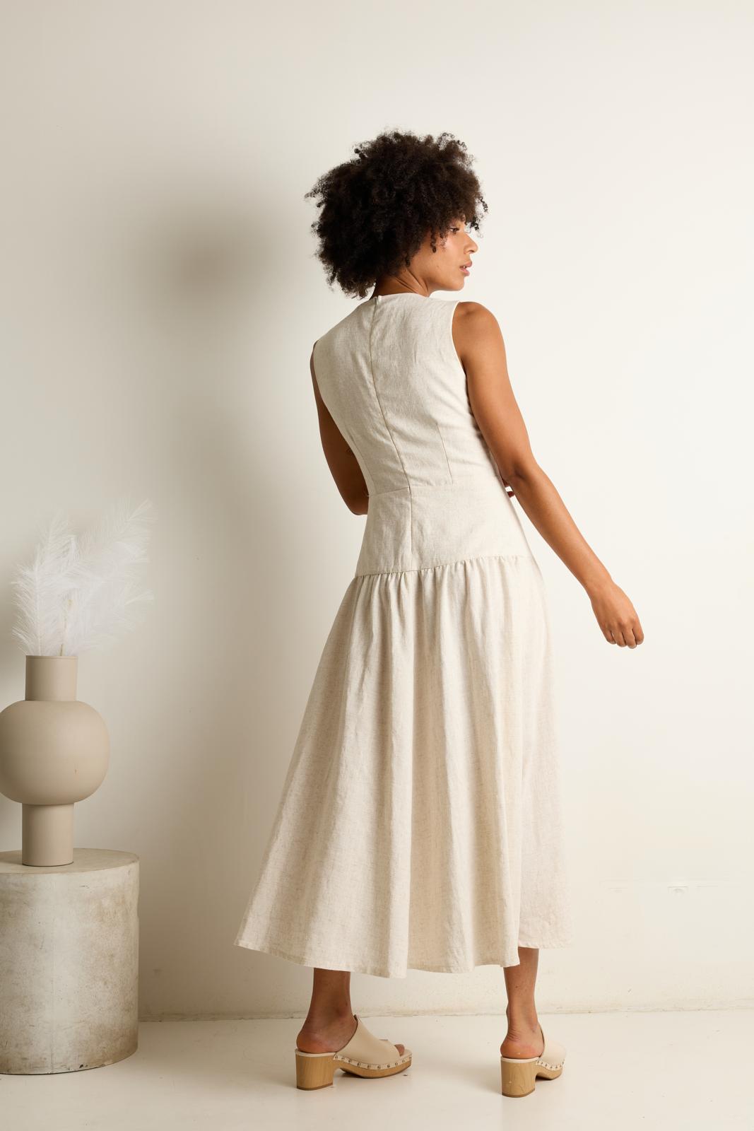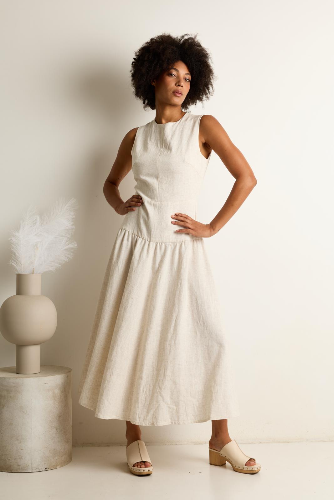 Less is more, kijk maar naar deze klassieke jurk met lichtgetailleerd lijfje plus heupstuk (deze delen zijn gevoerd voor een mooie afwerking) en met een rimpelrok eronder. Dit mooi-weer-model is een keer uitgevoerd in linnenlook stof voor een stijlvolle jurk en een keer in zomers seersucker – mét bubbelstructuur - voor een casual jurk die nooit kreukt!