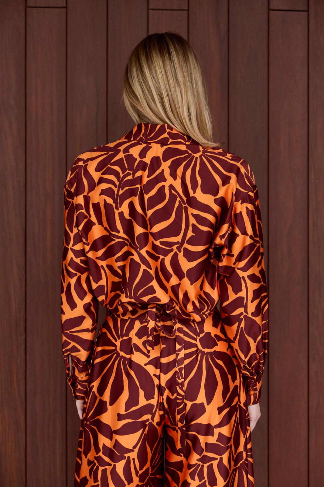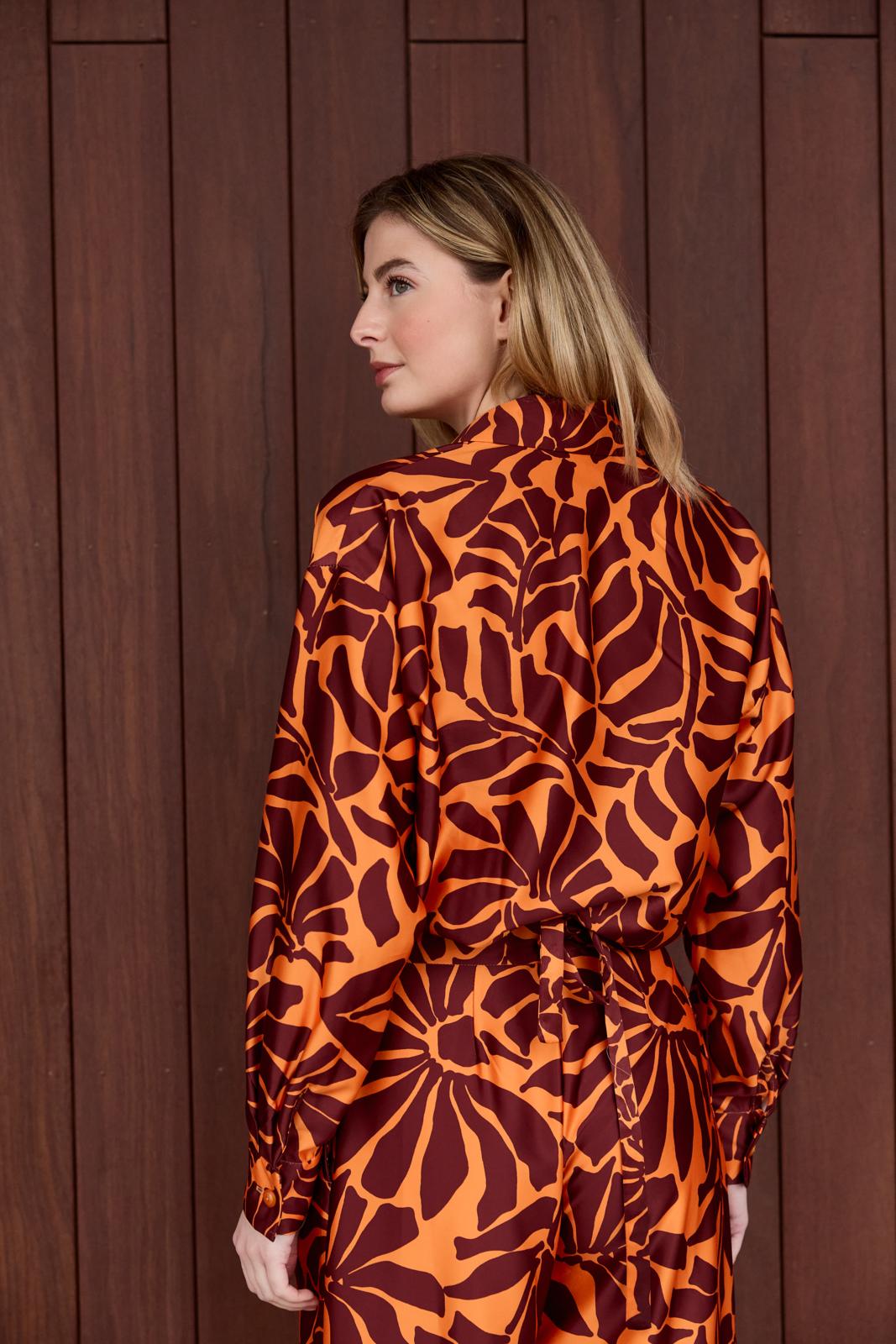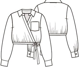 De blouse is een kort wikkelmodel met smalle strikbies en één borstzak als detail. Een top met net dat beetje extra!